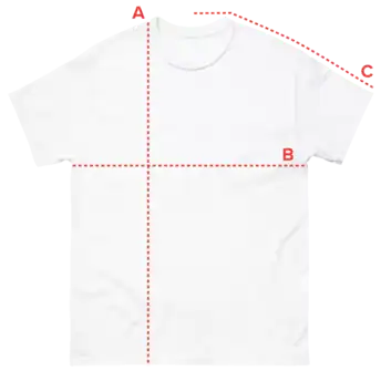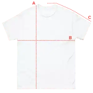 Sitúa el extremo de una cinta métrica junto al cuello en la parte superior de la camiseta (el punto más alto del hombro). Extiende la cinta hasta el extremo inferior de la camiseta.